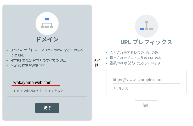 | ドメインプロパティ | URLプレフィックス | |